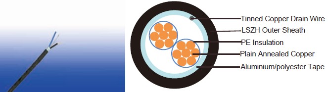 Overall Screen: Aluminium/polyester tape with 0.5mm2 screen (7/0.3mm) tinned copper drain wire.