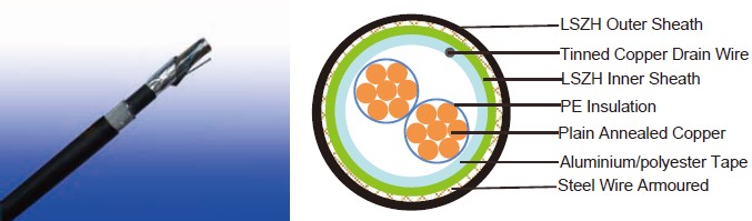The galvanized steel wire armour provides excellent protection. Generally,EN 50288-7 cables are used within