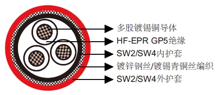 1.9/3.3kV, 3.3/3.3kV HF-EPR绝缘,SW2/SW4护套铠装阻燃电力&控制缆专为船舶和海上移动平台的固定布线而设计,适用于电
