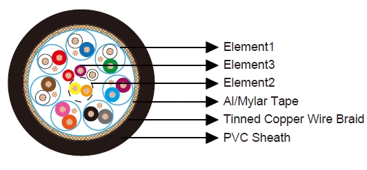 Élément 1 : 7PR×28AWG (Cu/Cellule en acier inoxydable/Blindage individuel en aluminium-mylar + fil de drainage en TC)