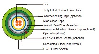 防火中心束管式光缆主要特征是质量轻和直径小,适合架空或者管道铺设。他们基本上主要用于建筑物内部,隧道,地铁或者封闭区,还进