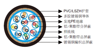 多对分屏蔽和总屏蔽电缆-百通等效电缆8170由单独屏蔽的线对绞合成缆,外层为铝箔总屏蔽和铜丝编织总屏蔽。每个单独屏蔽的线对都