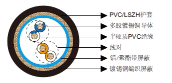 多对铝箔总屏蔽&铜丝编织总屏蔽电缆-百通等效电缆8332由对绞线绞合成缆,外层为铝箔总屏蔽加铜丝编织总屏蔽。适用于RS-232和