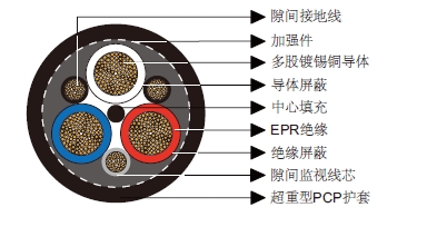 1×隙间监视线芯:柔软的多股镀锡铜导体与EPR覆层。