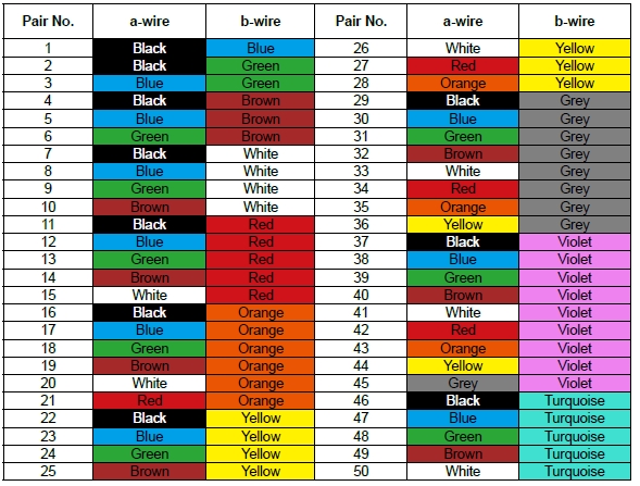 Single Quad (2 pair) without individual screens are colour coded in clockwise order of rotation: Black, Blue, Green