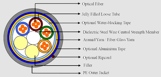 Loose-tube cable: used in the majority of outside-plant installations in North America.