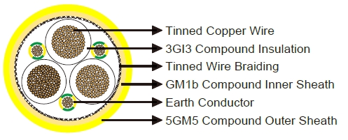 Three power cores laid up with the protective earth conductors split into three in the outer interstices |