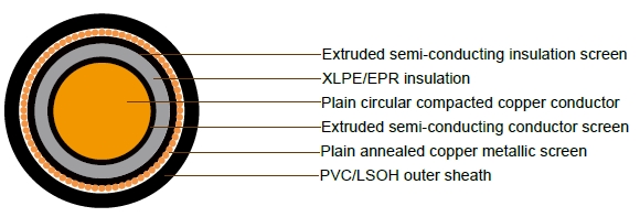 Extruded semi-conducting conductor screen Plain annealed copper metallic screen PVC/LSOH outer sheath