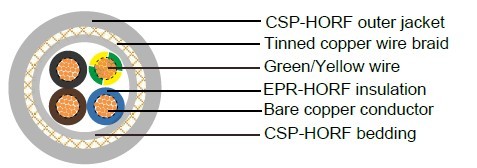 CSP(Chlorosulphonated Polyethylene), HOFR (Heat and Oil Resistant and Flame Retardant) sheath