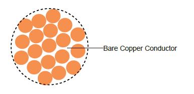 Conductor: Bare copper conductors are compressed concentric-lay-stranded consisting of one or